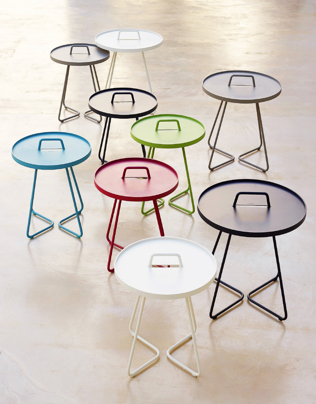 Ursprünglich in einer Höhe von 52 cm erhältlich, ist der beliebte On-the-Move Beistelltisch nun auch als kleiner Bruder zu beziehen. Die kleinere Ausgabe hat eine Höhe von 44 cm. Außer in den drei klassischen Farben – Weiss, Anthrazit und Taupe – ist der kleine On-the-Move auch in den Trendfarben Lavendel, Türkis und Mint erhältlich.
