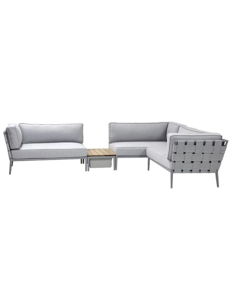 Das Conic Ecksofa mit Daybed besteht aus folgenden Modulen: Conic 2-Sitzer Sofamodul rechts, 2x Conic 2-Sitzer Sofamodul links, Conic Box Tisch