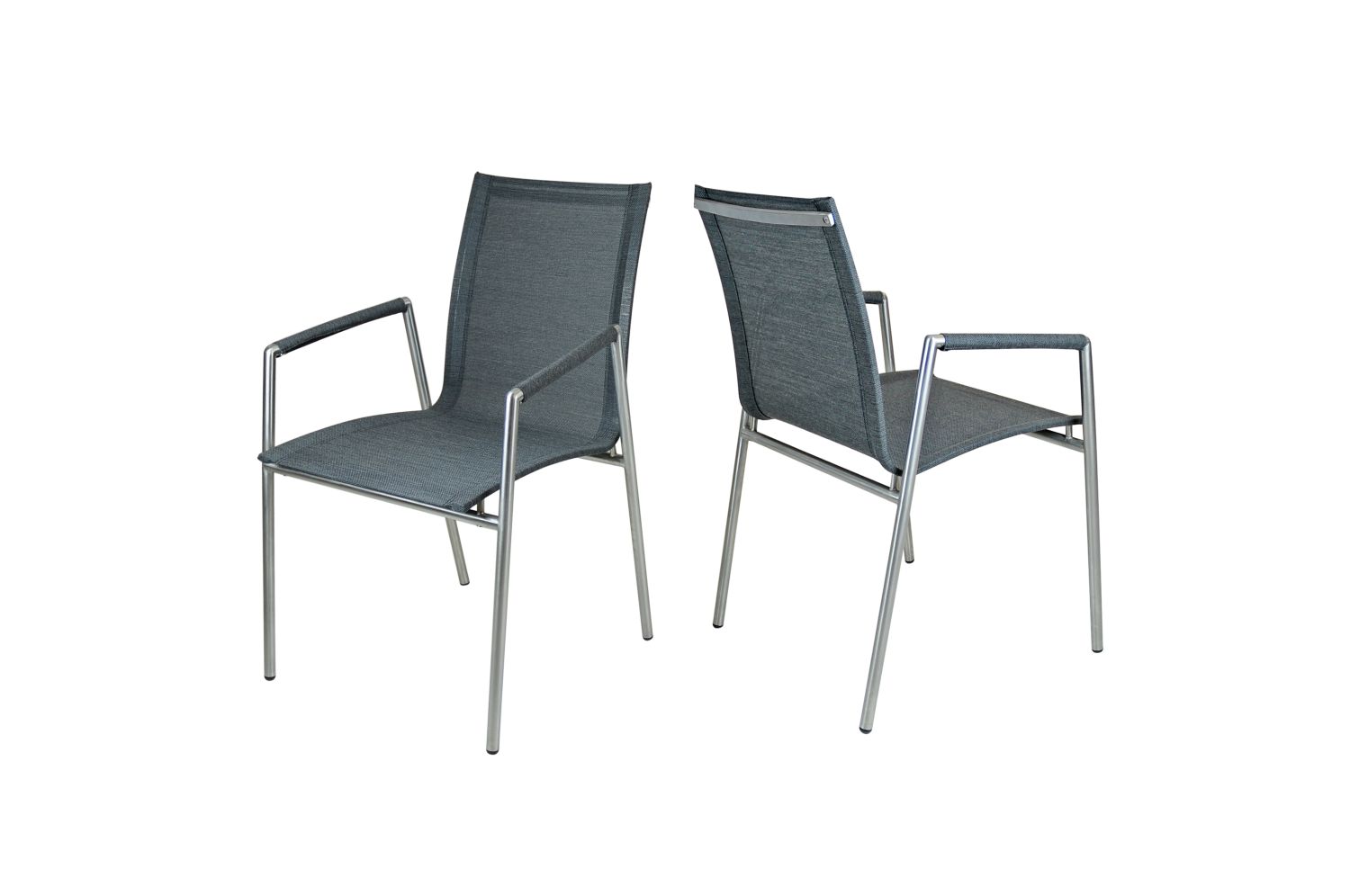 Attraktiver Stapelstuhl mit hochwertigem Edelstahl-Rundrohrgestell und Textilenbespannung Batyline Eden black.