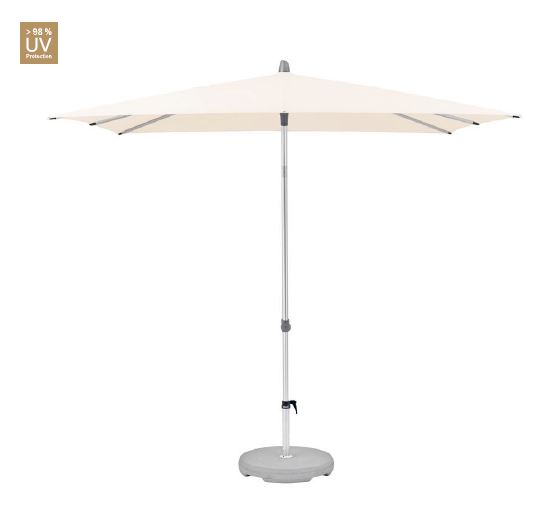 Sein Design mit eleganter geschwungener Stoffkante harmoniert sowohl mit Alt – als auch Neubauten und verleiht ein harmonisches Flair. Das stabile Aluminium-Gestell reflektiert dezent die Farben der Umgebung. Auch eignet er sich ideal für Terrassen und als Ergänzung zu allen Glatz – Grossschirmen.