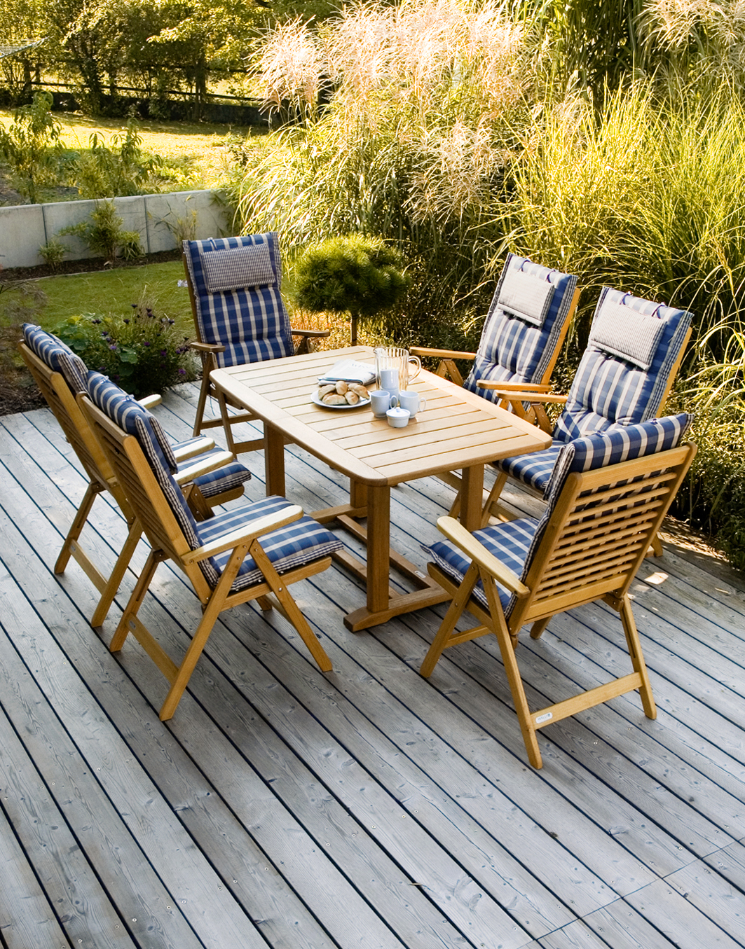 Kommen mehr Gäste als geplant? Zwei Rechtecktische zusammengestellt ergeben eine große Tafel. Die praktischen Klapptische in ovaler, runder und rechteckiger Form sind mit einem zusätzlichen Rahmen unter der Platte verstärkt und somit sehr belastbar. Die Klappsessel sind mit niedriger oder hoher, 5-fach verstellbarer Rückenlehne erhältlich. Die ideale Ergänzung bildet ein Klapphocker.