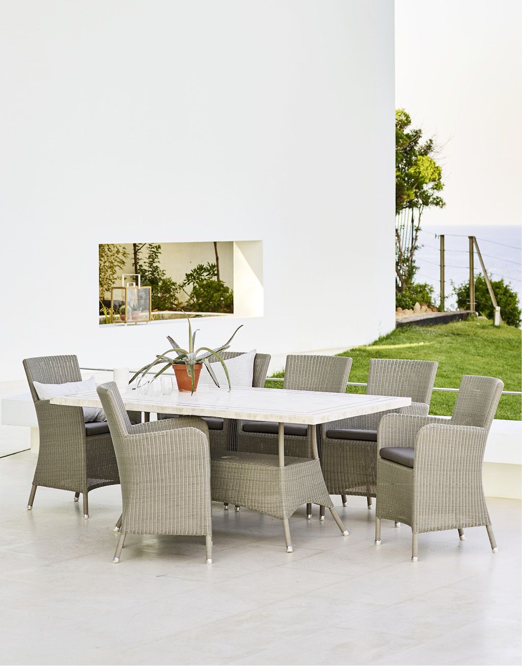 Der Hampsted Gartensessel ist ein beliebter Klassiker für den Garten oder für die Terrasse. Die auffällig feine Verarbeitung verleiht den Geflecht-Möbeln von Cane-line eine besondere Ausstrahlung. Die Cane-line Weave® Faser wird auf der Basis von durchgefärbtem Polyethylen hergestellt, ist ausgesprochen reißfest, UV- und wetterbeständig sowie schmutzabweisend und recyclebar. Das Grundgestell bildet ein stabiler, korrosionsfester und pulverbeschichteter Metallrahmen.