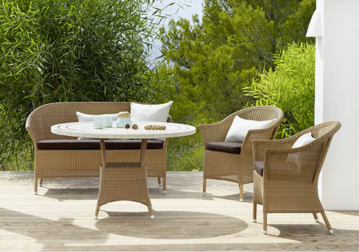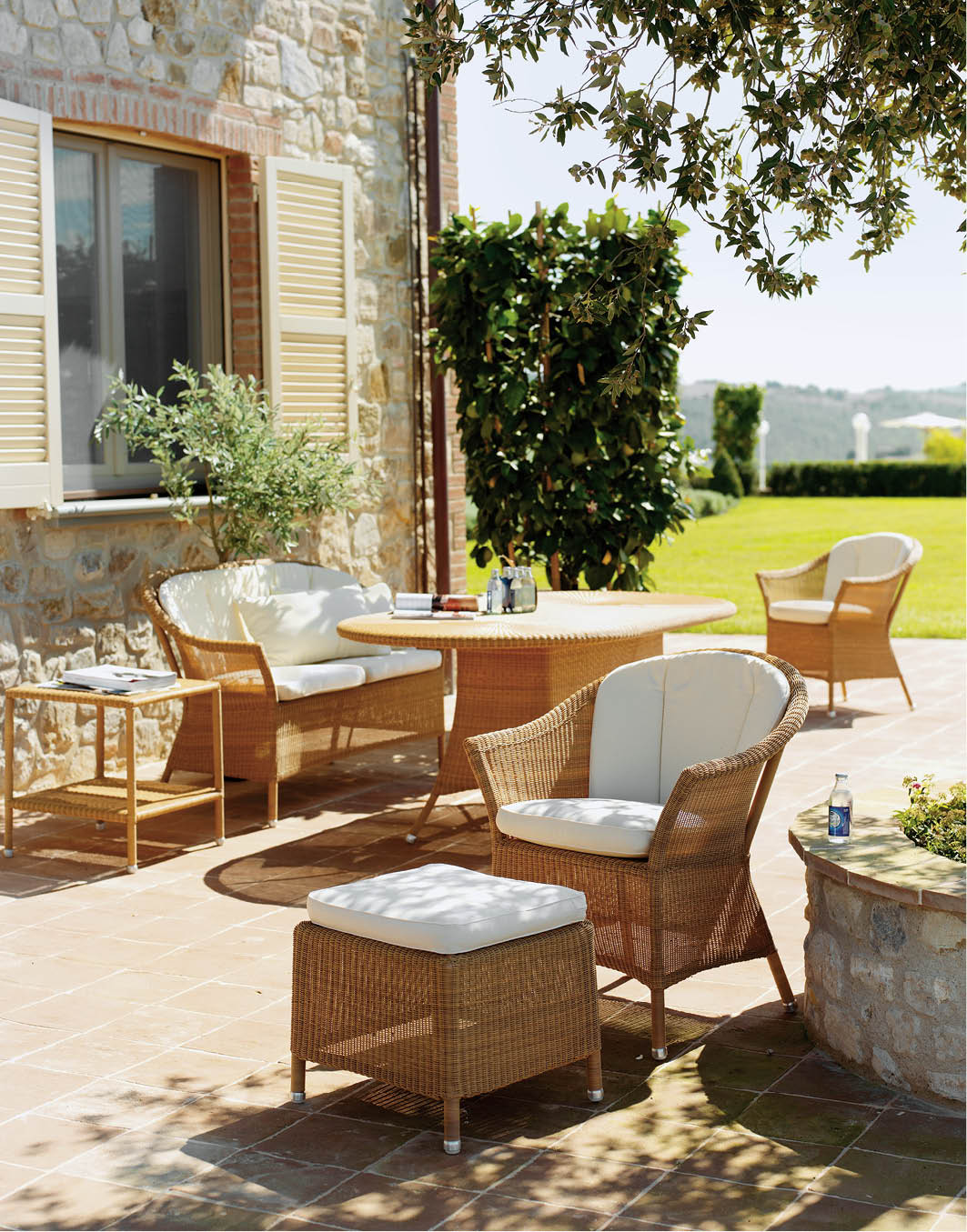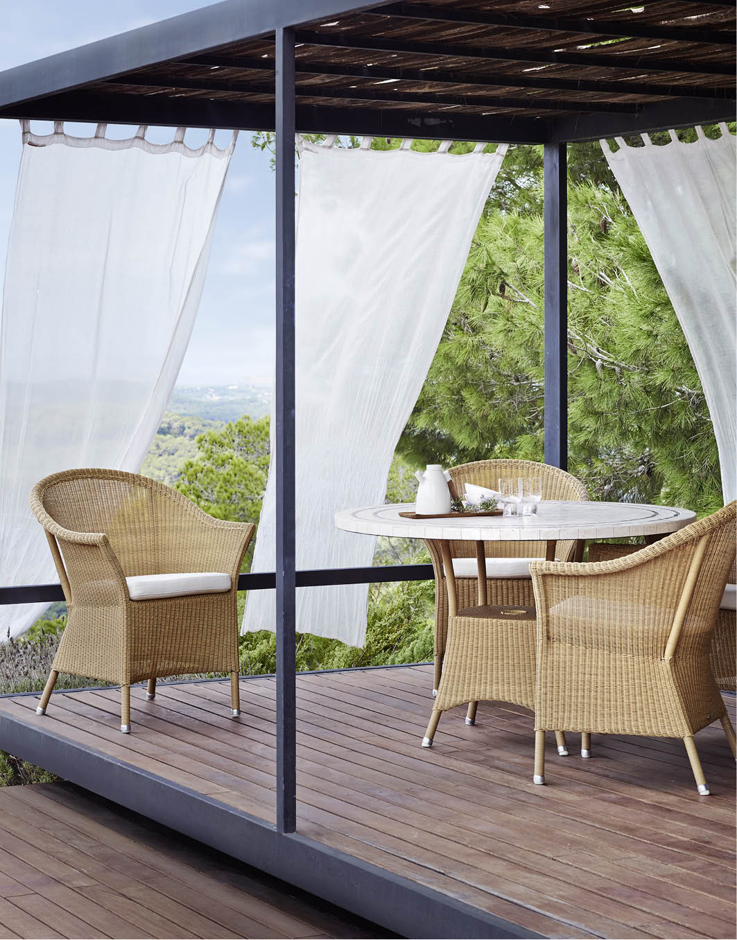 Die Serie Lansing im klassischen, romantisch-ländlichen Look umfasst Stühle, Bänke und Tische und ist in den Farben Natur und Taupe erhältlich. Der groβe Gartensessel passt zu dem schönen Lansing Gartensofa, das Ihnen sowohl einen groβen Komfort beim Essen als auch entspanntes Sitzen für lange Sommerabende bietet. Der Serie ist aus witterbeständiger Cane-line Weave® Faser handgeflochten und äusserst pflegeleicht.