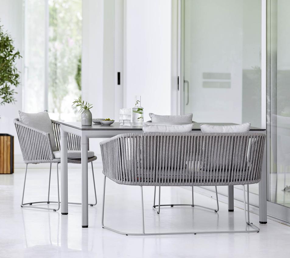 Moments ist aus dem witterungsbeständigen Cane-line Rope mit AirTouch® QuickDry-Sitzkissen hergestellt – durch diese Technologie sind die Kissen nach einem Regenschauer schnell wieder trocken.