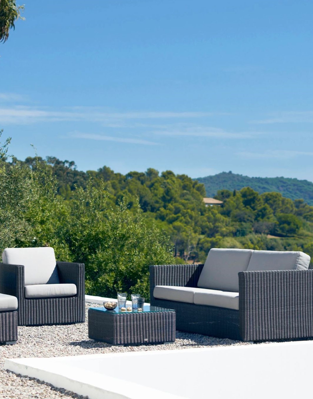Die auffällig feine Verarbeitung verleiht den geflochtenen Lounge-Möbeln von Cane-line eine besondere Ausstrahlung. Die Cane-line Weave® Faser wird auf der Basis von durchgefärbtem Polyethylen hergestellt, ist ausgesprochen reißfest, UV- und wetterbeständig sowie schmutzabweisend und recyclebar. Das Grundgestell bildet ein stabiler, korrosionsfester und pulverbeschichteter Metallrahmen. Chester ist in Natur und dem äußerst vielseitigen Graphitgeflecht erhältlich.