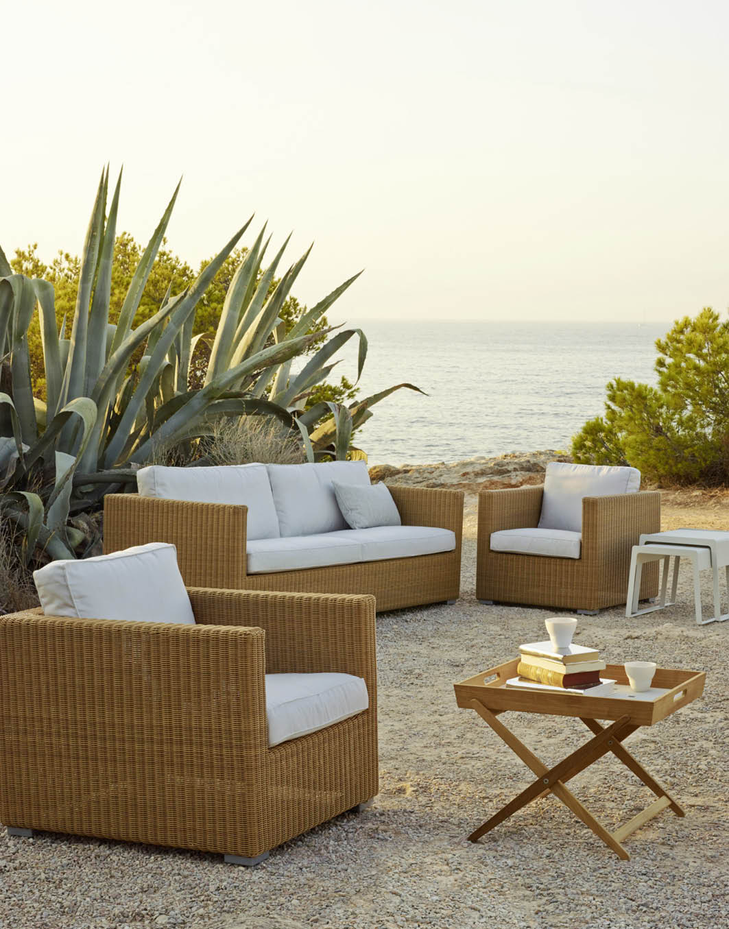 Die auffällig feine Verarbeitung verleiht den geflochtenen Lounge-Möbeln von Cane-line eine besondere Ausstrahlung. Die Cane-line Weave® Faser wird auf der Basis von durchgefärbtem Polyethylen hergestellt, ist ausgesprochen reißfest, UV- und wetterbeständig sowie schmutzabweisend und recyclebar. Das Grundgestell bildet ein stabiler, korrosionsfester und pulverbeschichteter Metallrahmen. Chester ist in Natur und dem äußerst vielseitigen Grafitgeflecht erhältlich.