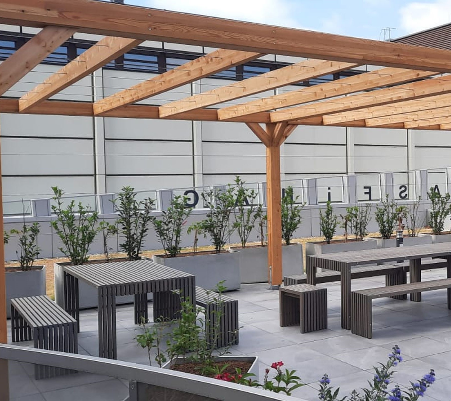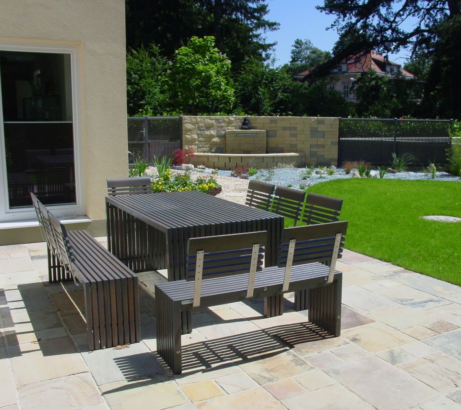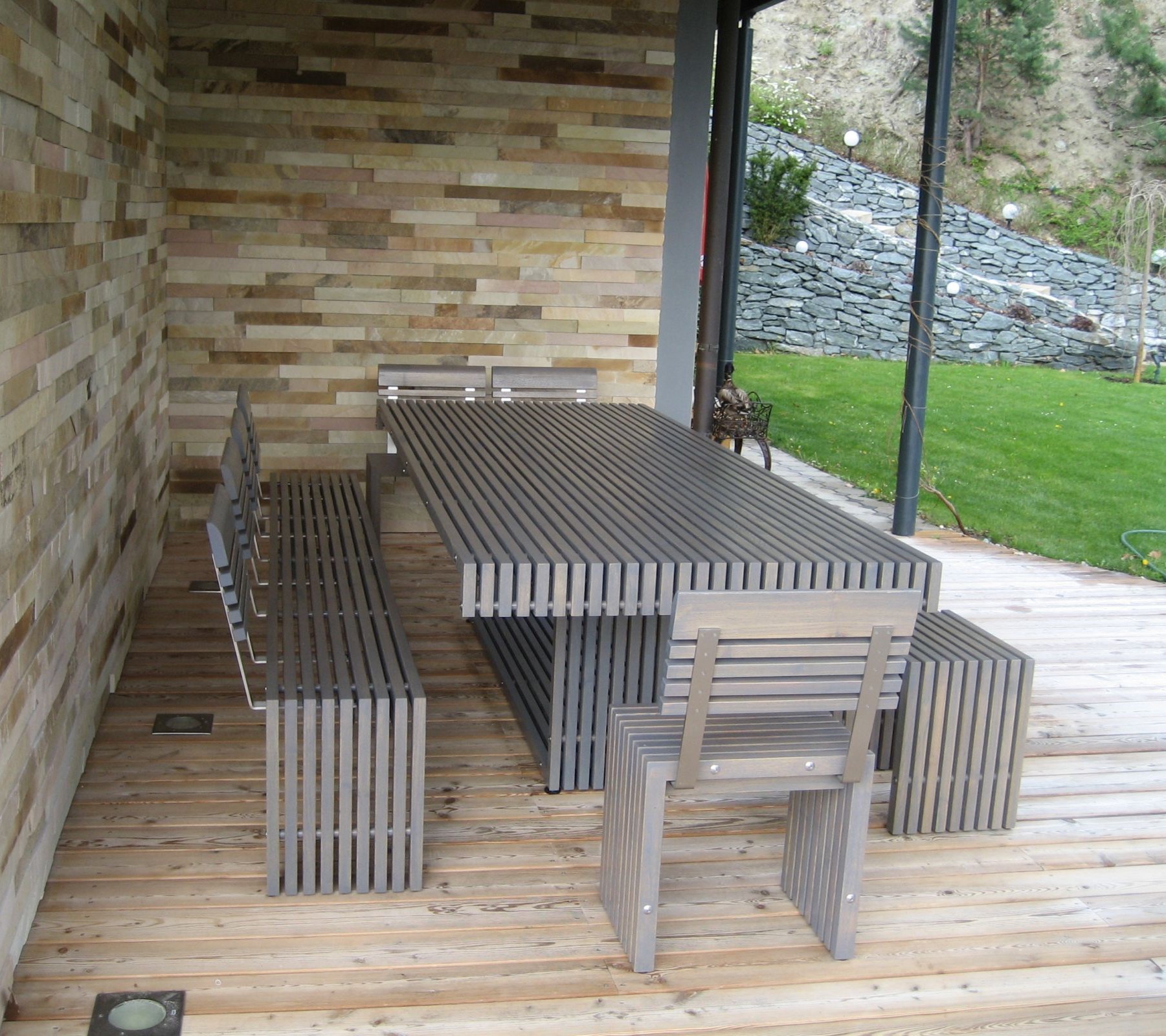 Auf Wunsch ist Tavola auch farblos oder unbehandelt erhältlich. Tisch- und Banklängen sind variabel, der Tisch ist wahlweise mit Füßen oder geschlossenen Breitseiten erhältlich. Steckbare Rückenlehnen mit gebürstetem Edelstahl sorgen für noch mehr Sitzkomfort – die Rückenlehne gibt dem Körperdruck sanft nach.