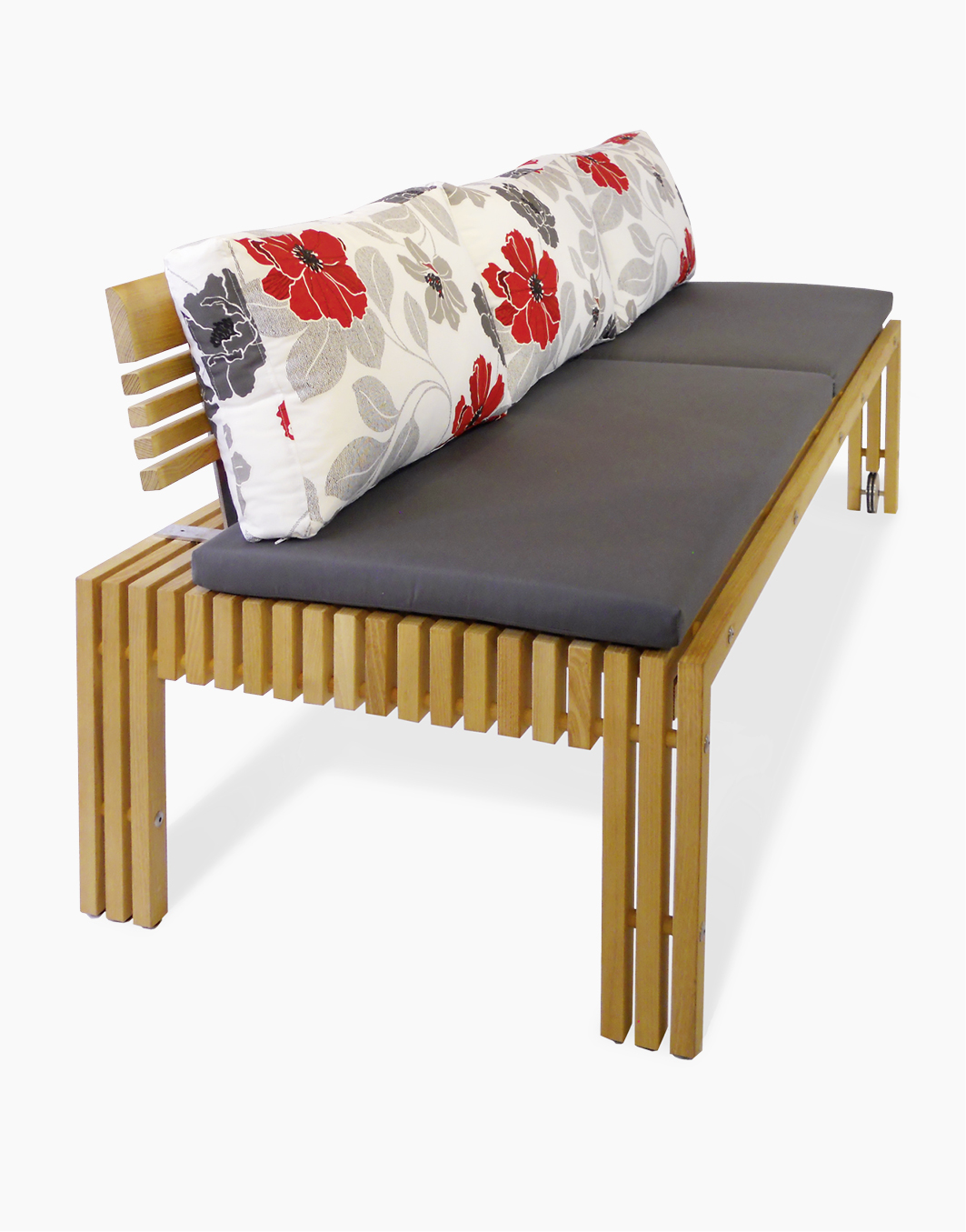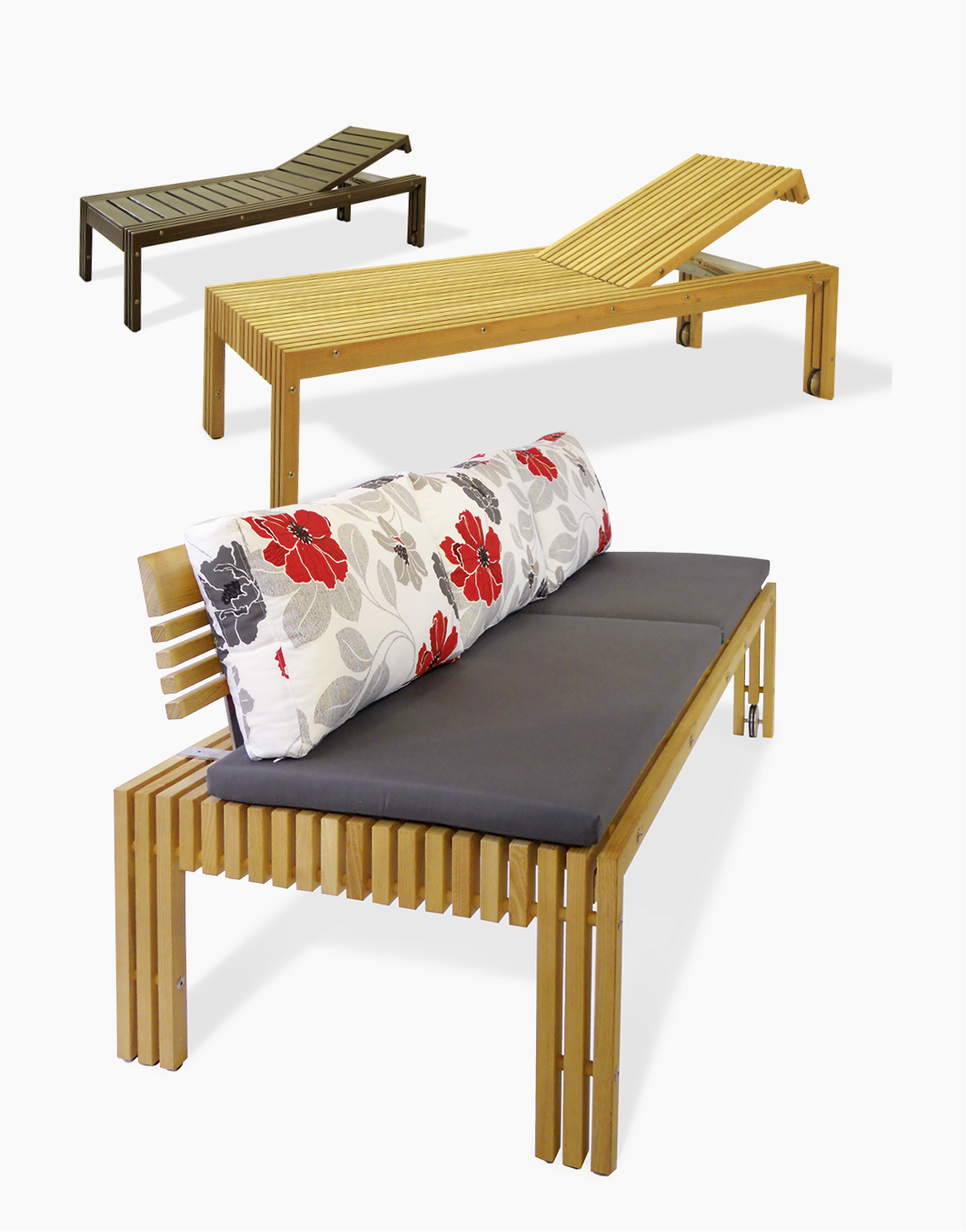 Liege Tavola ist in zwei Designs – mit Längs- oder Querbelattung – erhältlich. Der Kopfteil ist 3-fach verstellbar, zwei Rollen sorgen für Mobilität. Zaubern Sie mit einer steckbaren Rückenlehne ruckzuck eine Sitzbank oder ein bequemes Gartensofa! Die Sitzhöhe passt ideal zu Tisch Tavola – gestalten Sie Ihre individuelle Ess- und Sofalandschaft mit diesem flexiblen Loungemöbel aus bestem heimischen Holz. Sonderanfertigungen als Outdoor-Sofa für Ihre Terrasse oder Ihren Balkon sind möglich. Blättern Sie in unseren Referenzen und kontaktieren Sie uns.