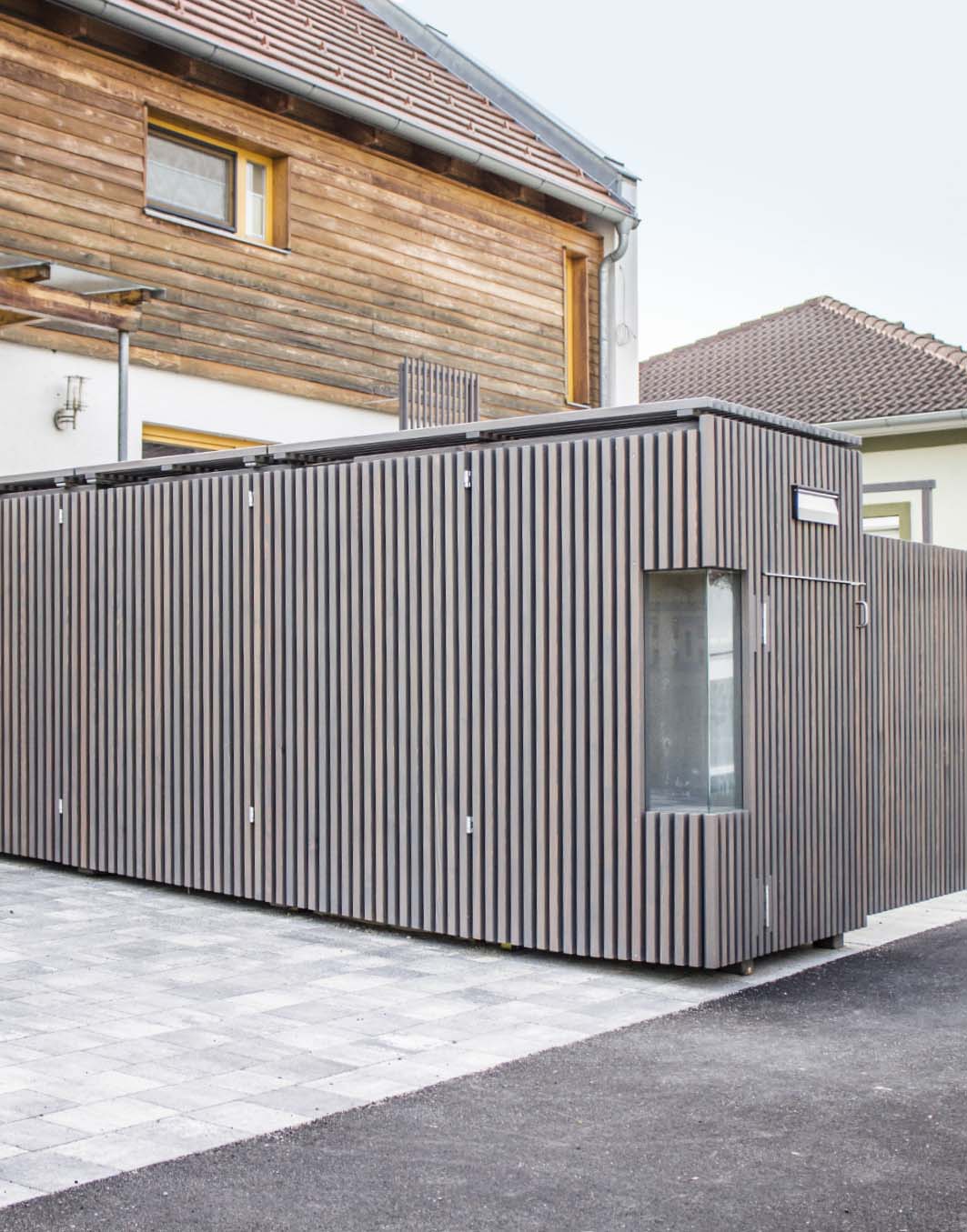 Mülltonnenbox und exklusiver Mülltonnenverbau aus Leistenfeldern mit Sperrholz blickdicht hinterlegt. Unsere Leistenfelder sind für jeden Einsatz geeignet – ob Garten und Gerätehaus, Einhausungen für Rasenmäher und Fahrräder, luftige Dachverkleidung oder elegante Rankhilfe.