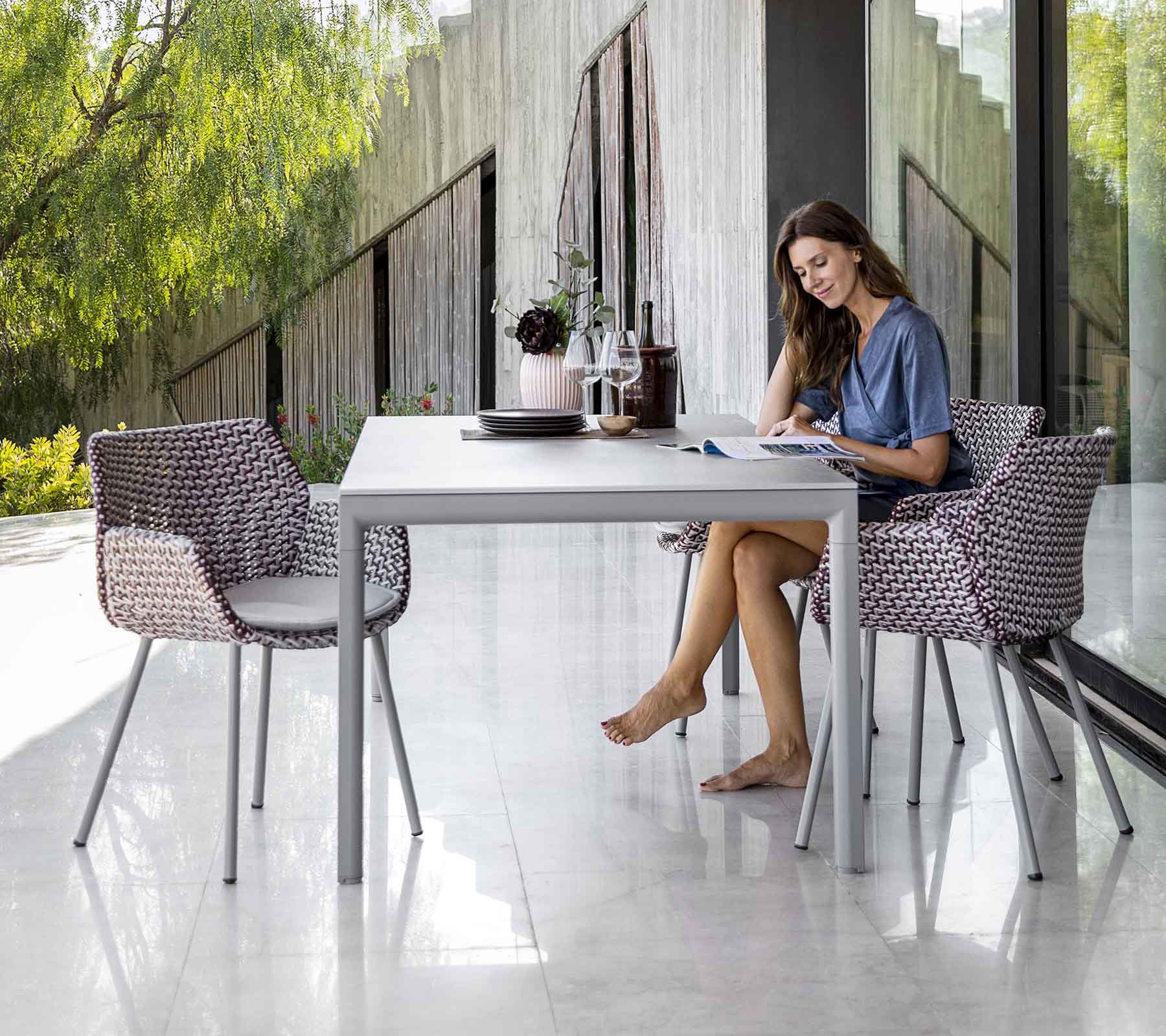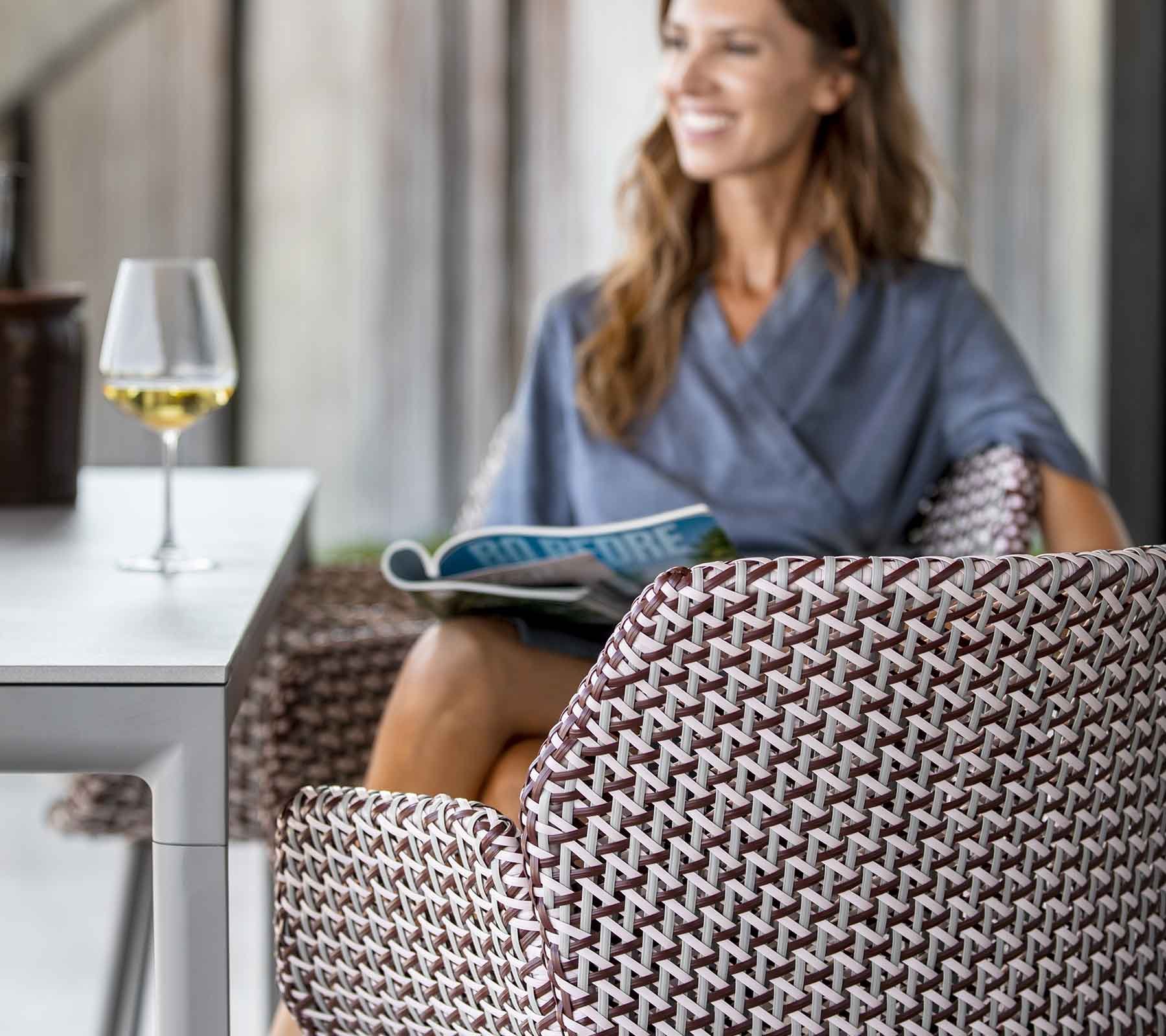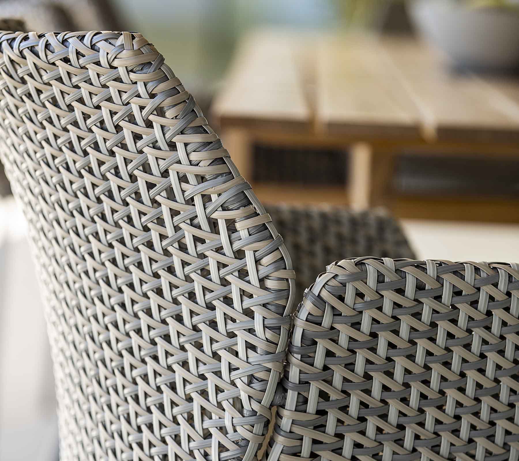 Vibe besteht aus einem starken Stahlrahmen mit einem Sitz aus einem einzigartigen Geflecht, das von unseren kompetenten Flechtmitarbeitern, von Hand hergestellt wurden. Vibe ist klassisch und zeitlos mit einem modernen Touch, in Form eines einzigartigen Geflechts und einem Mix aus Farben. Das Farbspiel des Geflechts lässt den Stuhl extravagant aussehen und verleiht dem Außenbereich Eleganz und Dynamik.